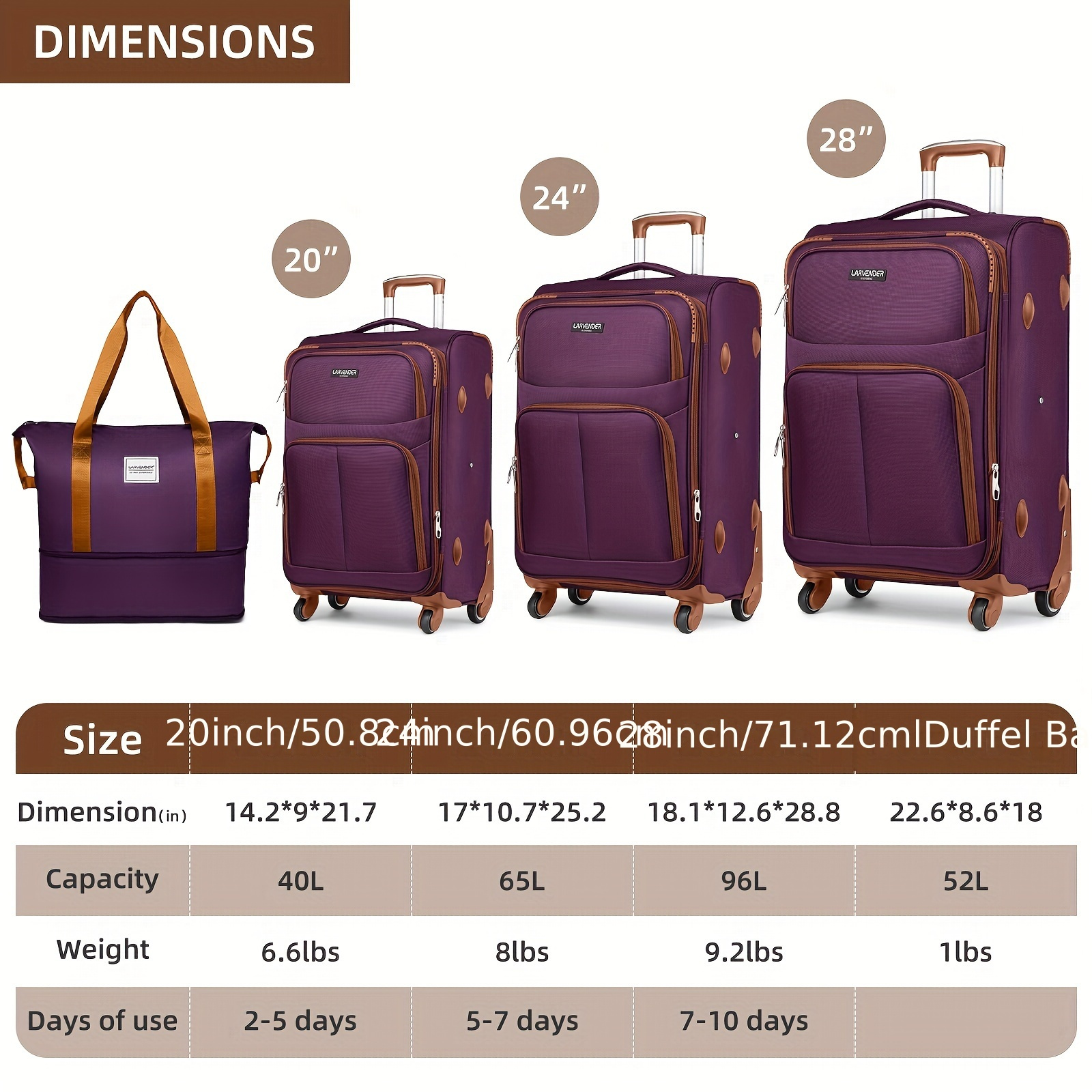 4 Pcs Luggage Set, Expandable Rolling Suitcases With Spinner Wheels
