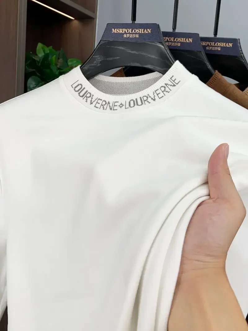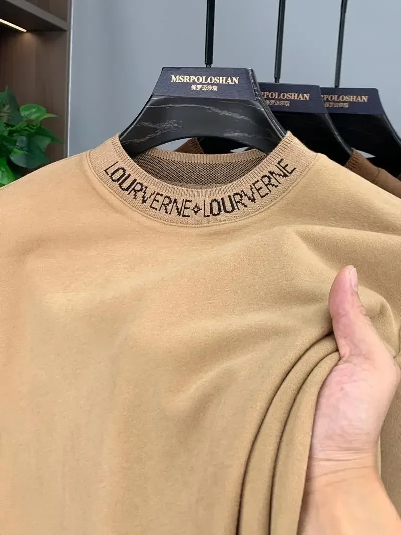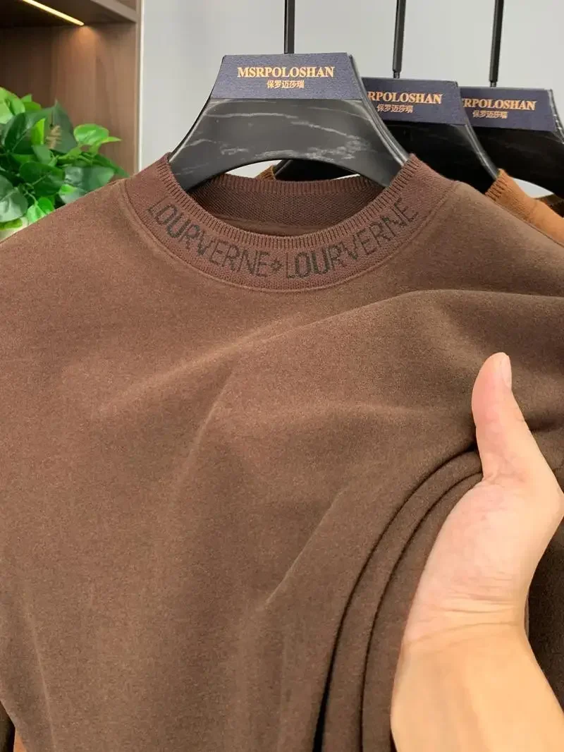 High-quality Designer Brand Men’s T-shirt Winter Double-sided Velvet Long-sleeved Crew Neck Thermal Top Polished Men’s Clothing